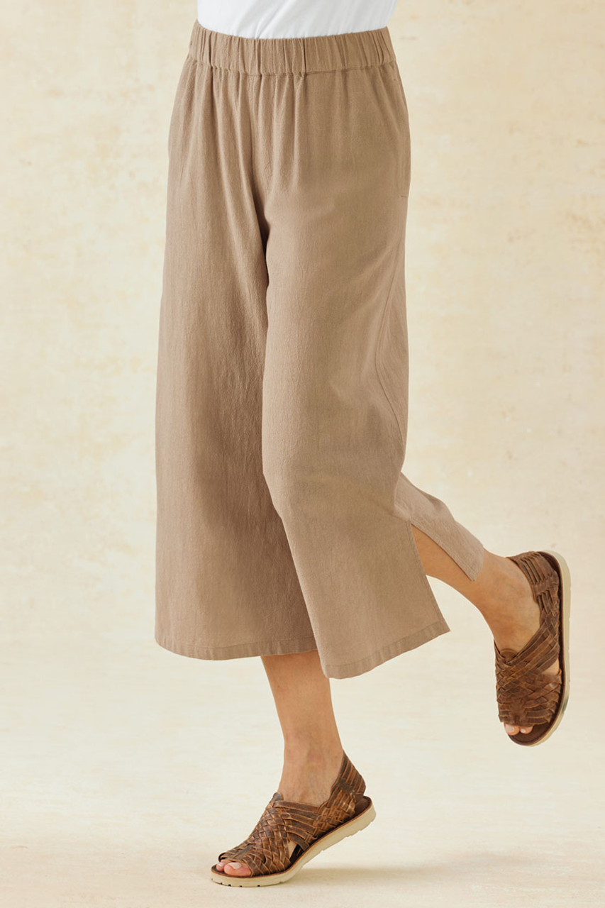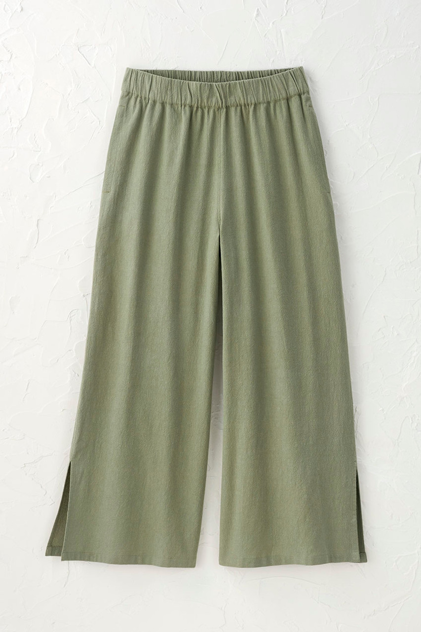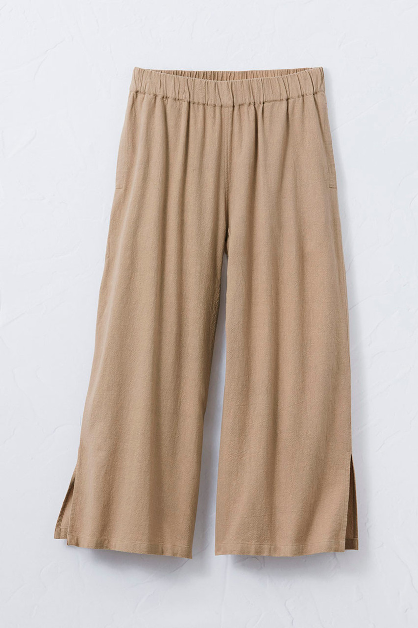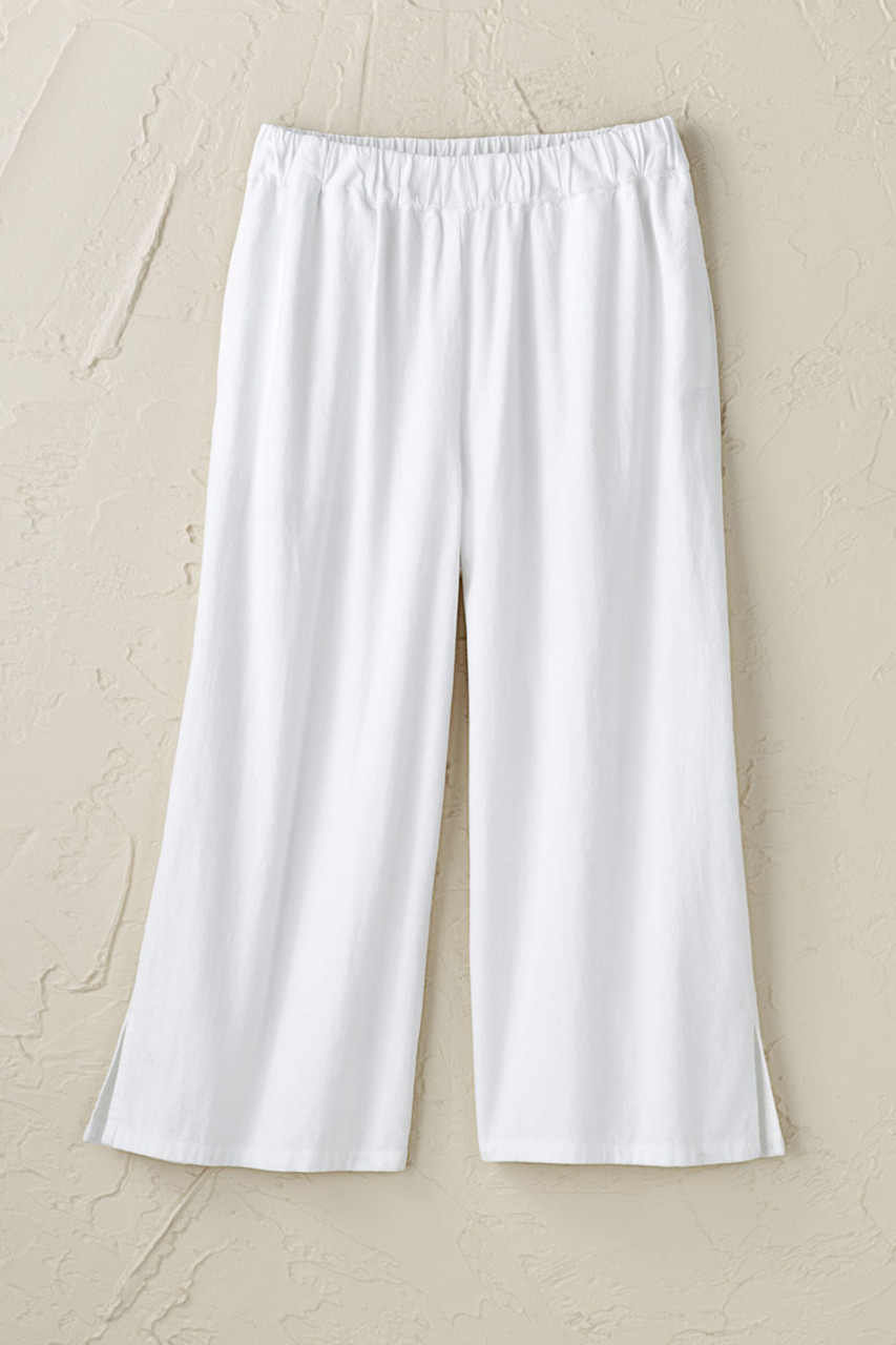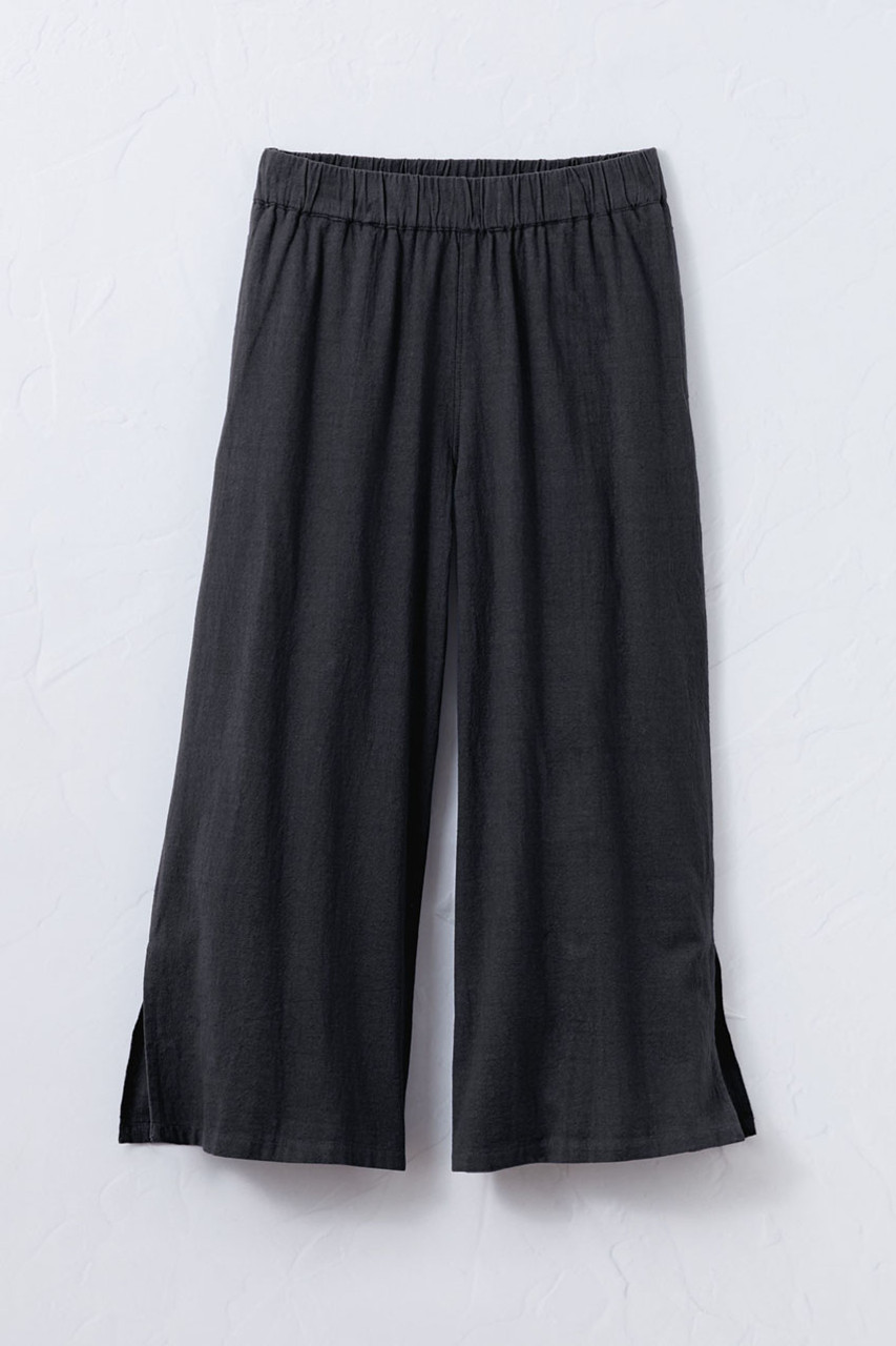 Enjoy a vacation vibe, every day. These ultra-lightweight gauze crops are ready for anything – perfect go-to’s for hot days. Pull-on waist, long side slits, on-seam pockets. Relaxed through hips.