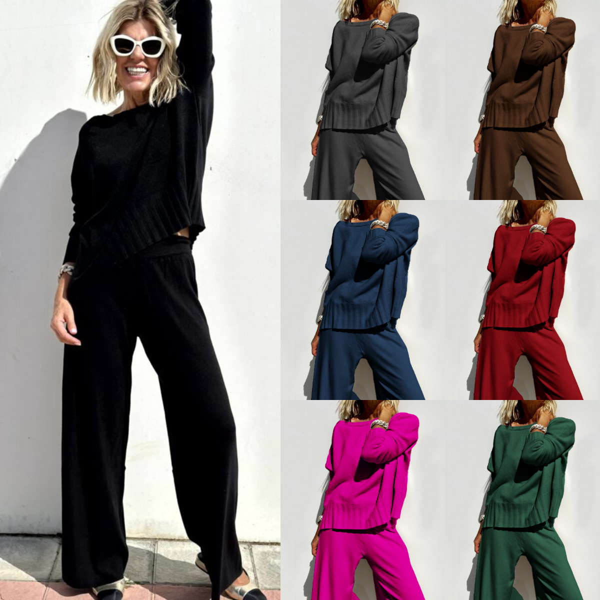 Soft cashmere fabric meets elegant design in this sweater suit, delivering luxurious warmth and effortless chic for all your casual occasions. 🌟
