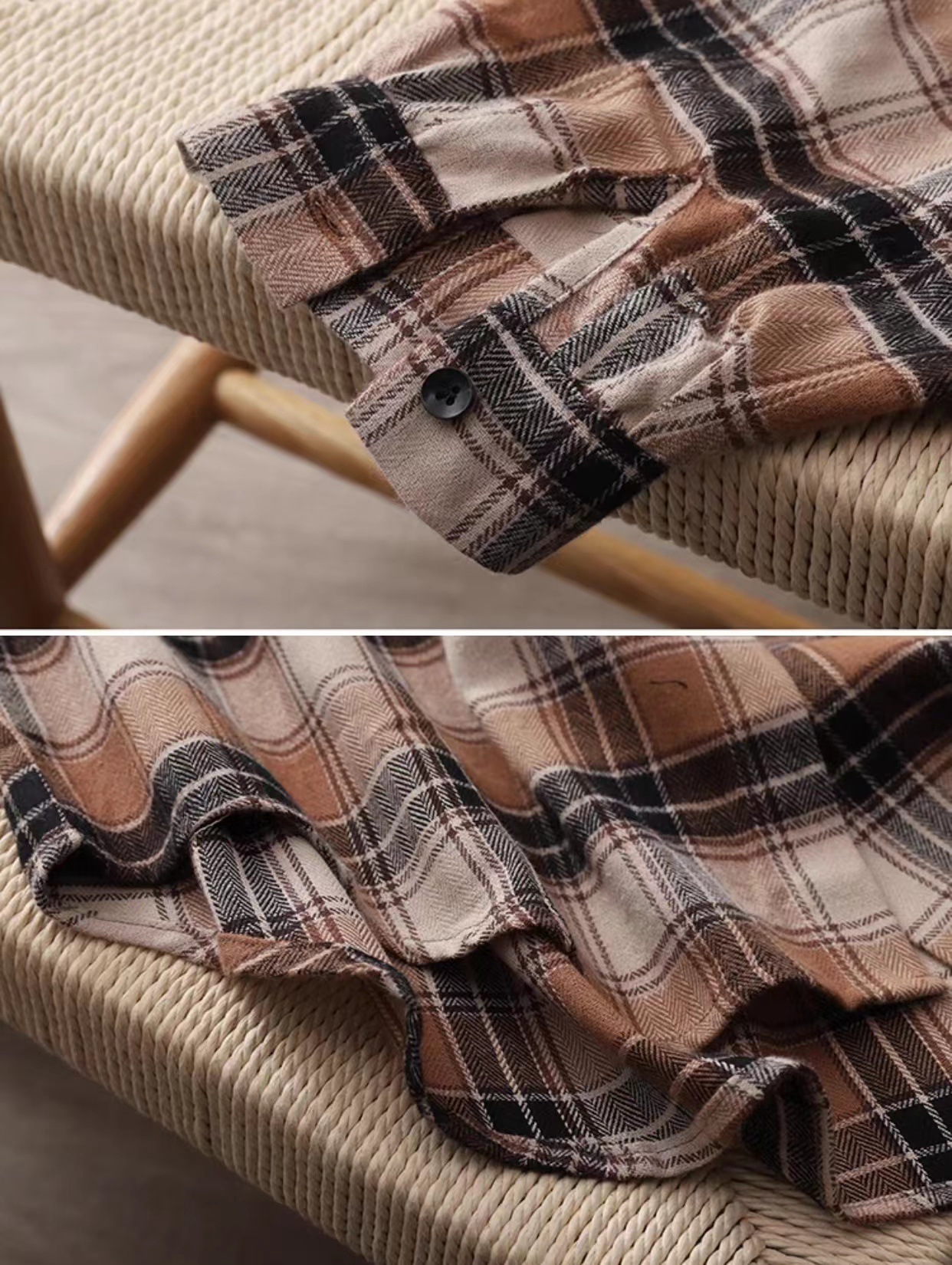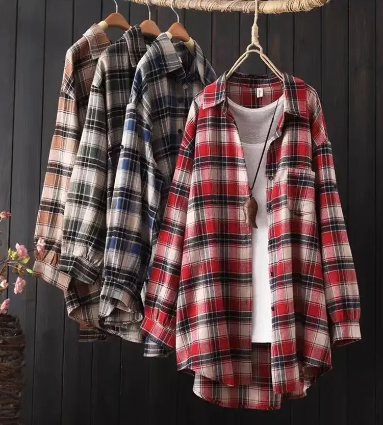 Cotton Linen Loose Fit Button Down Plaid Cardigan Shirt