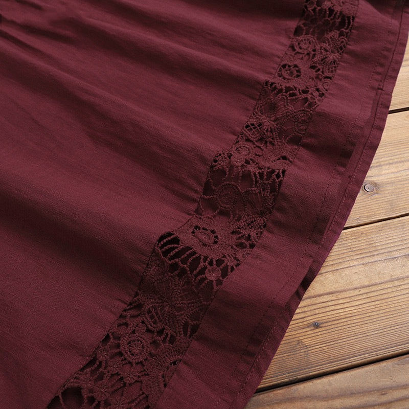 Cotton Linen Spliced Lace Temperament Shirt