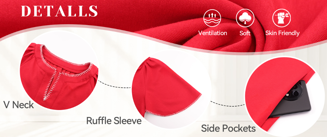 - Matching: Loose fit ruffle short sleeve mini dress can easy to match with any kind of high heels, sandals, flip flops or bags. Flutter sleeves and delicate ruffle accents on the sleeves add a romantic touch, paired with a flattering V-neckline and a contrasting hem for a chic summer look