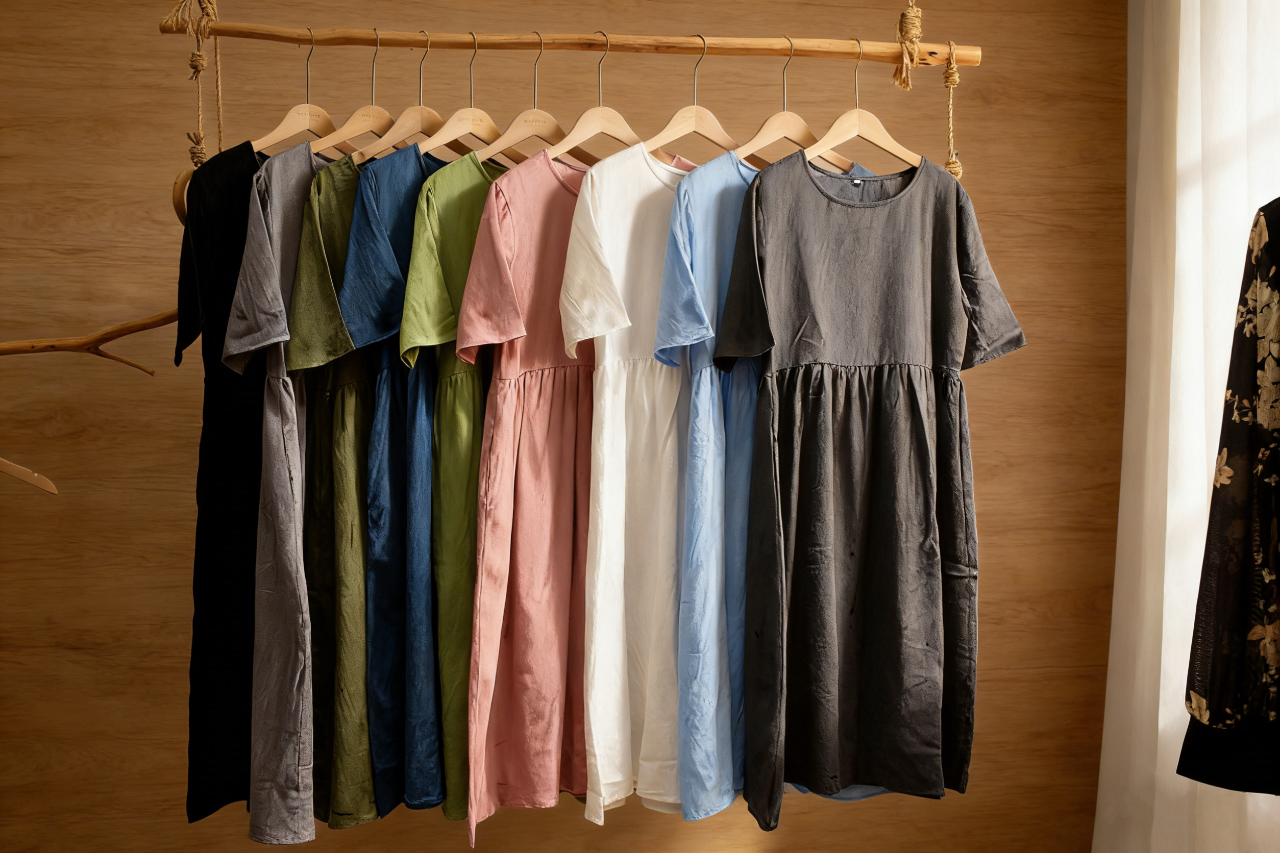 Loose round neck dresses. Basic short-sleeved, solid color, plain, trendy and elegant. 💛