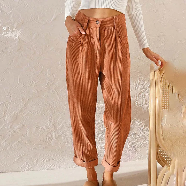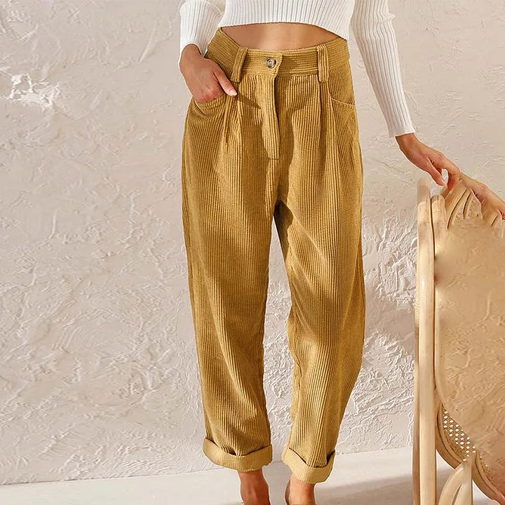 New Style Women's High Waist Solid Color Corduroy Straight Leg Pants
